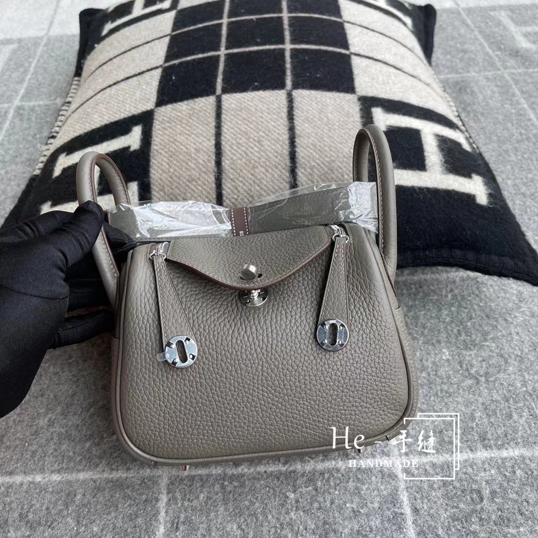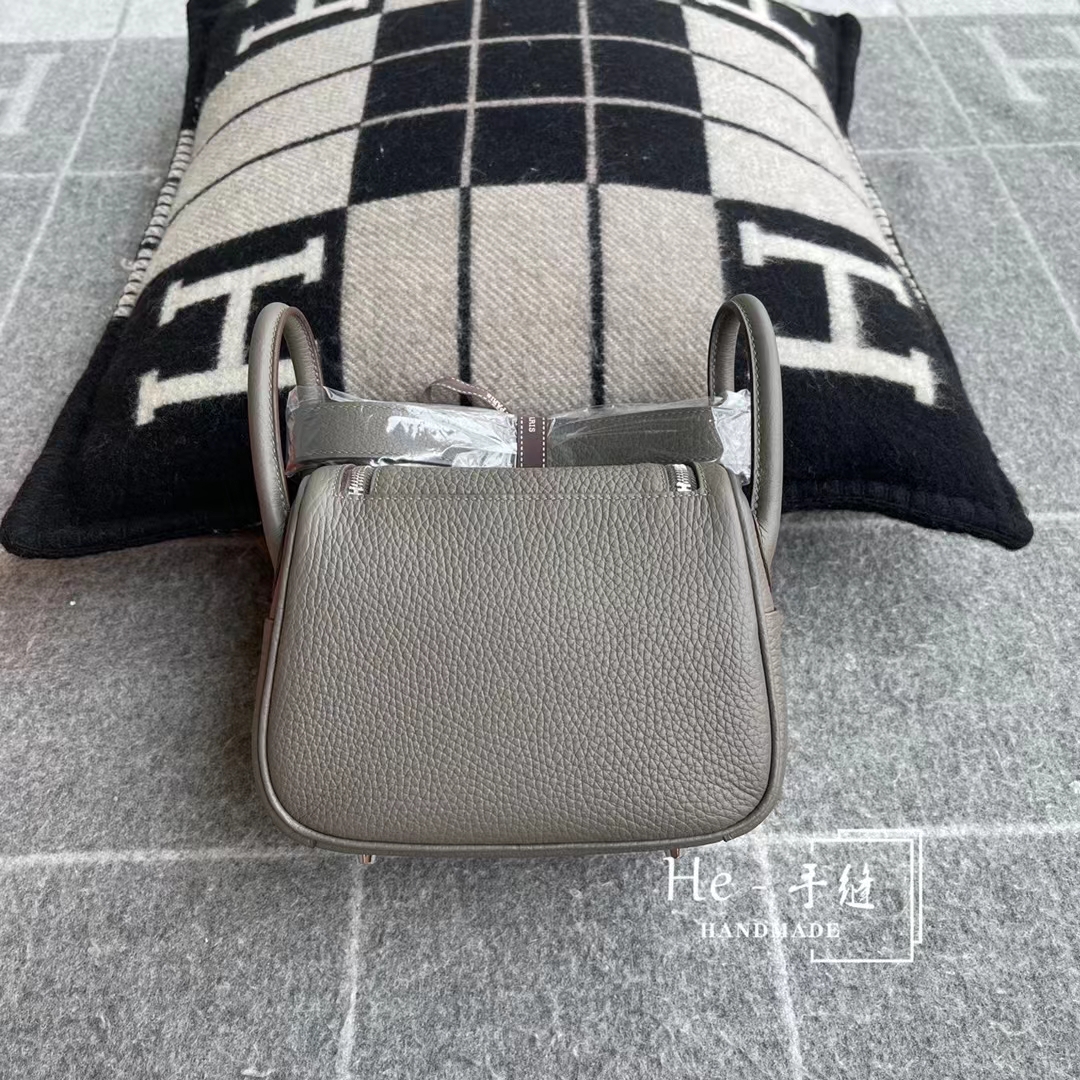 【He Handmade】Wholesale Hermes 8F Etain Mini Lindy 19CM Clemence Leather Silver Hardware